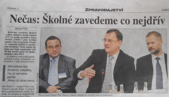 ale jak to doopravdy bylo, tedy jestli předseda vlády napsal návrh na odvolání ministra školství a poslal ho presidentovi a president to odložil a napsal mu, že mu nevyhoví, nebo zda se předseda vlády s presidentem o této eventualitě jen vybavoval a president ho přesvědčil, ať to nedělá.